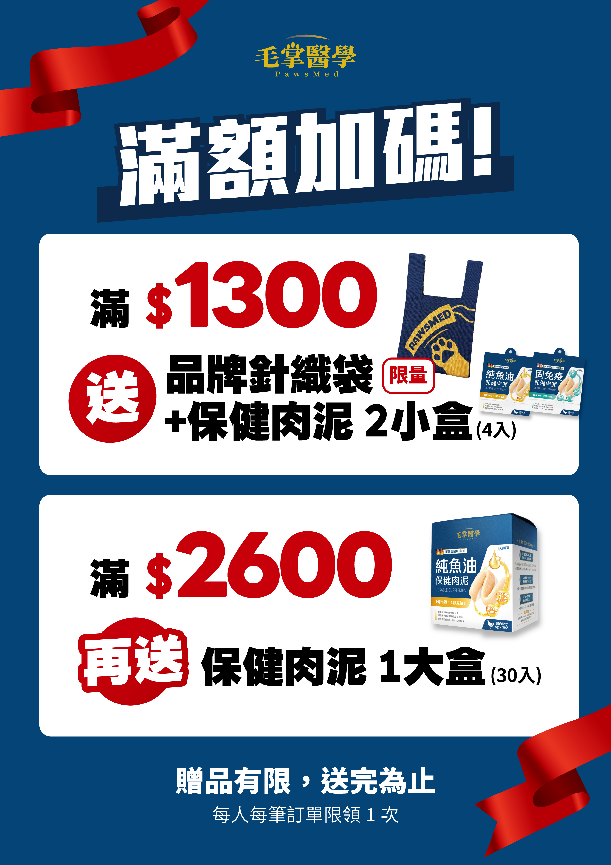 - 滿$2600 再送大盒30入保健肉泥1盒