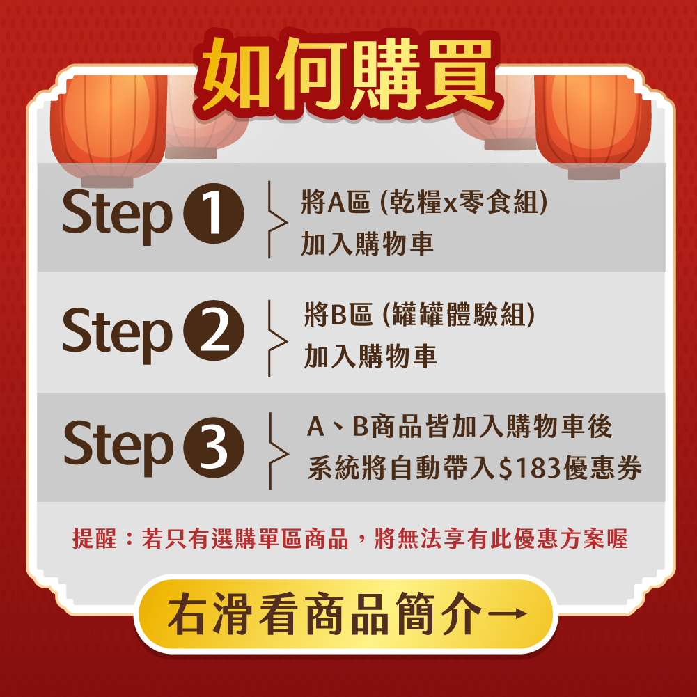 Step 1 : 將A區 (乾糧x零食組) 加入購物車