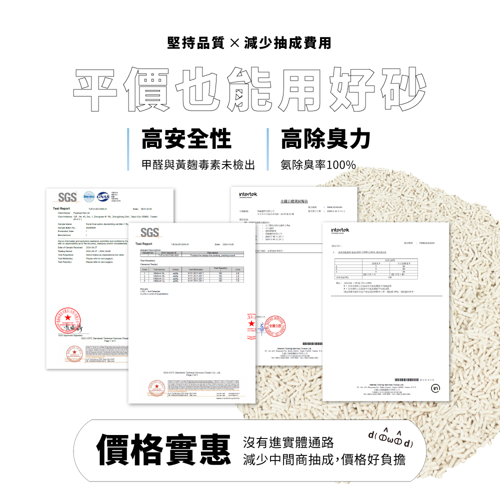 注意事項:本產品含豆腐砂,開封後容易受潮,請密封存放於陰涼乾燥處,並盡快使用完畢。