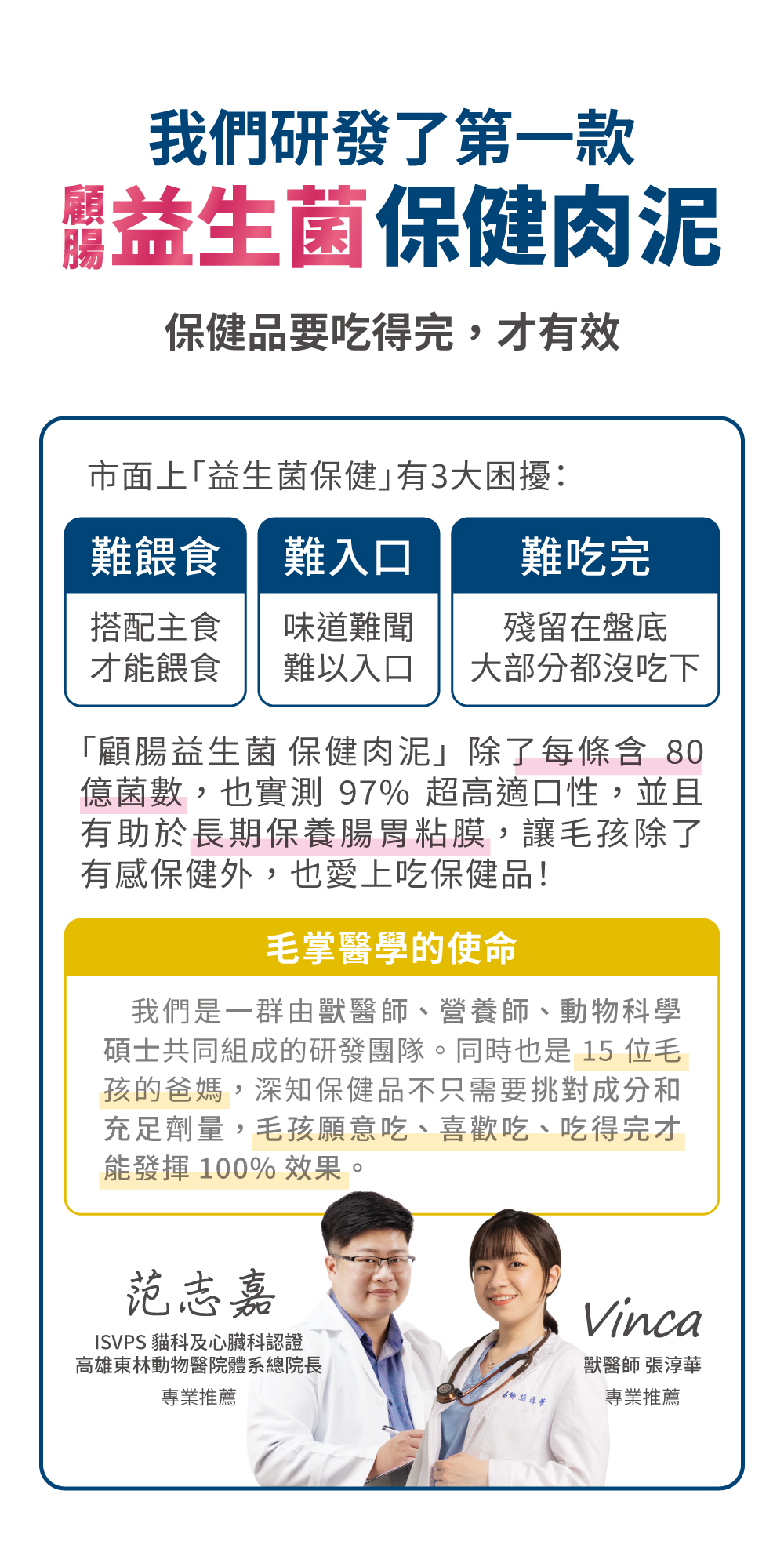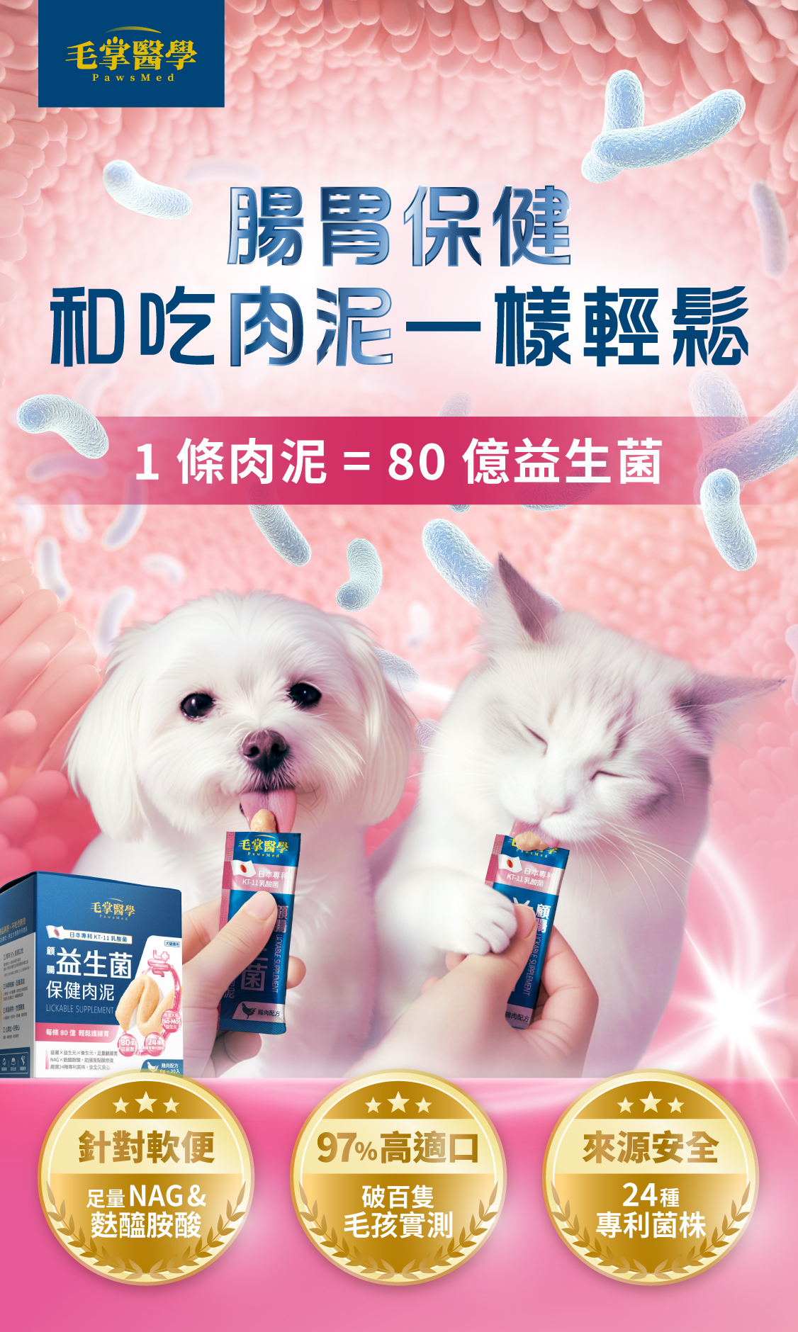是保健品!我們添加足量的保健成分確保有效,並製成毛孩愛吃的型態,因為市面上的保健品仍以人類的角度發想,導致使用上不但不方便,對毛孩也不友善。毛掌醫學秉持著以毛孩為出發點,開發對毛孩友善的保健品,讓毛孩不再害怕,反而愛上吃保健品!