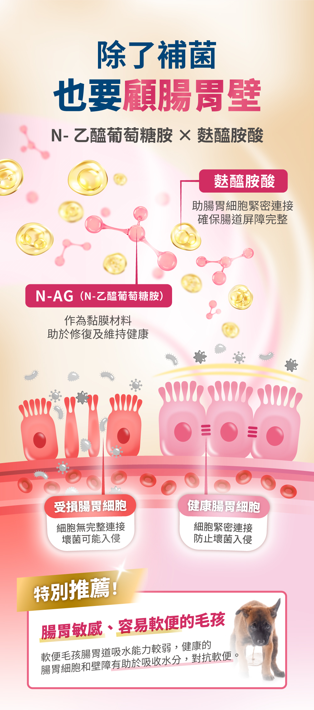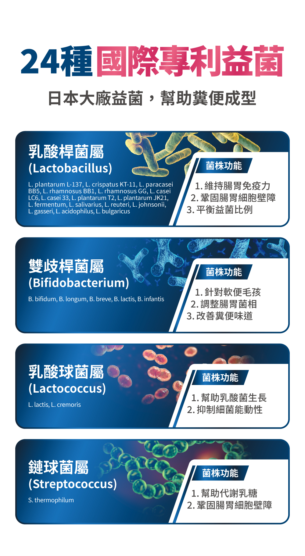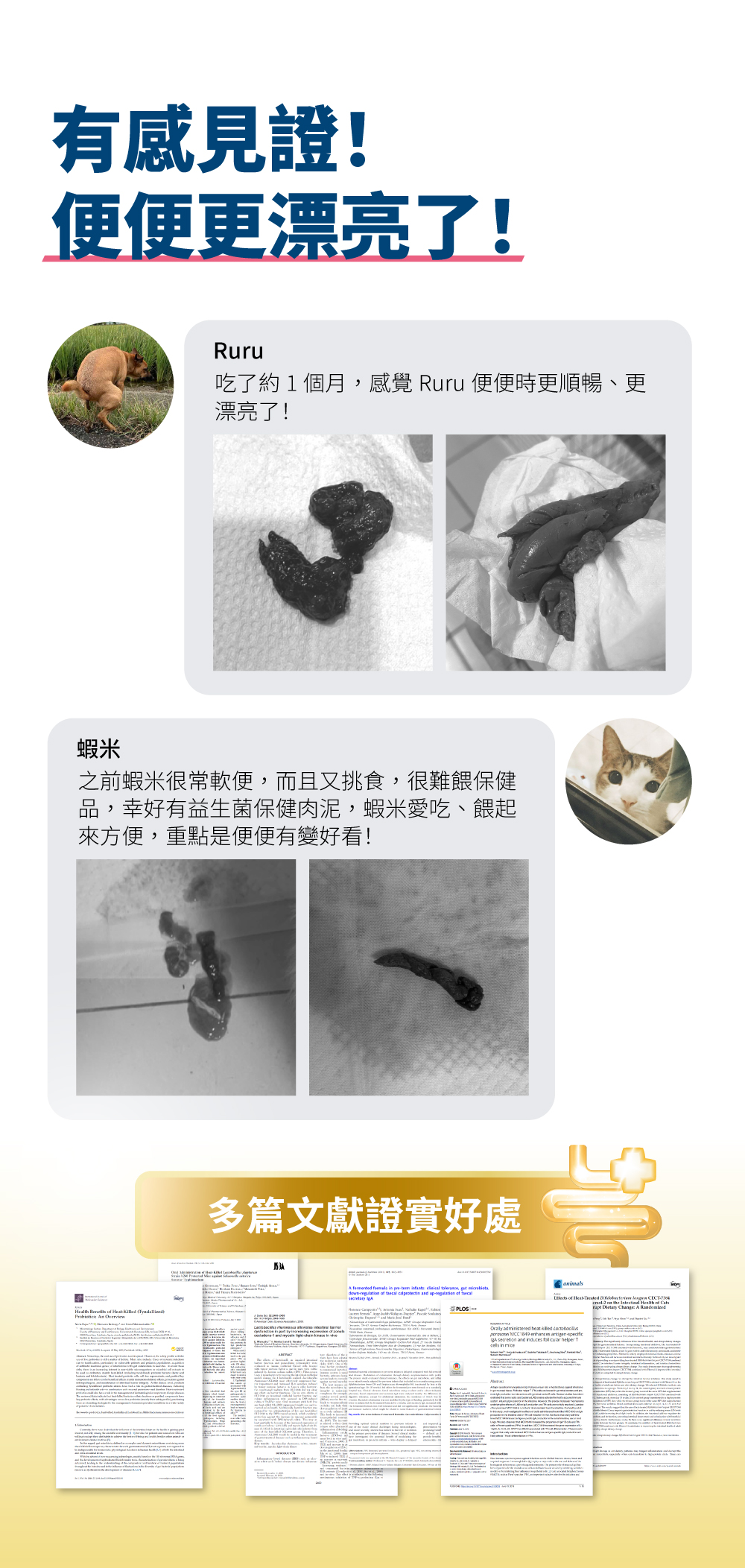 熱滅活益生菌:培養菌到活性最高的狀況後,熱滅封存有效成分(細胞壁、短鏈脂肪酸、代謝物等),可直接和腸胃作用,效果比傳統的益生菌快速且直接。