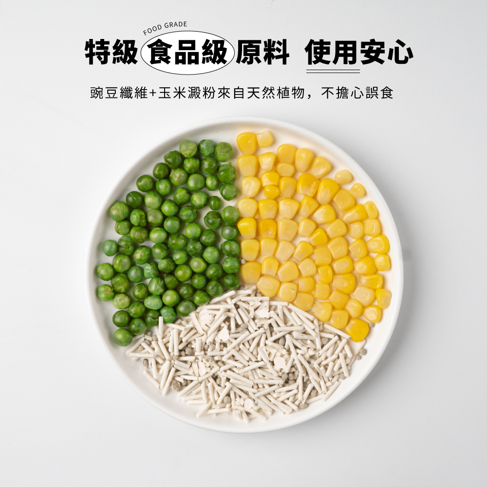 成分:豌豆纖維、玉米澱粉、鈉基膨潤土、瓜爾豆膠、小蘇打除臭粒、生態除臭菌、除臭生物酶