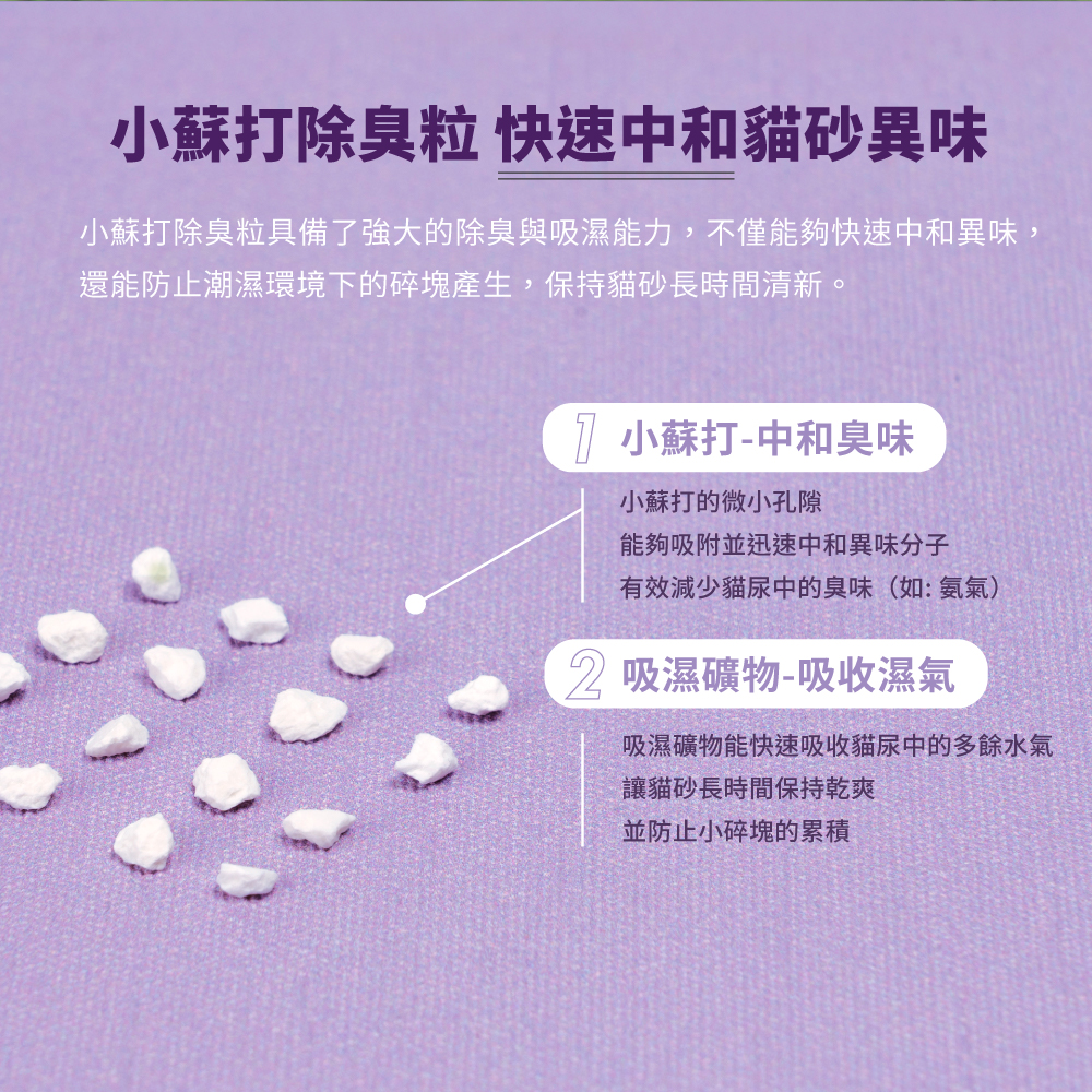 將原有的奈米礦晶升級為小蘇打除臭粒,全面提升除臭力與結團性。