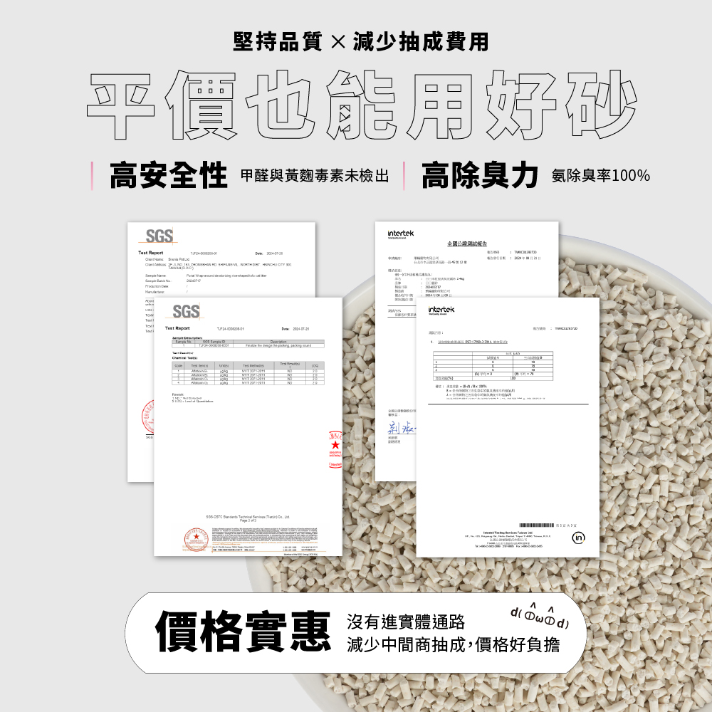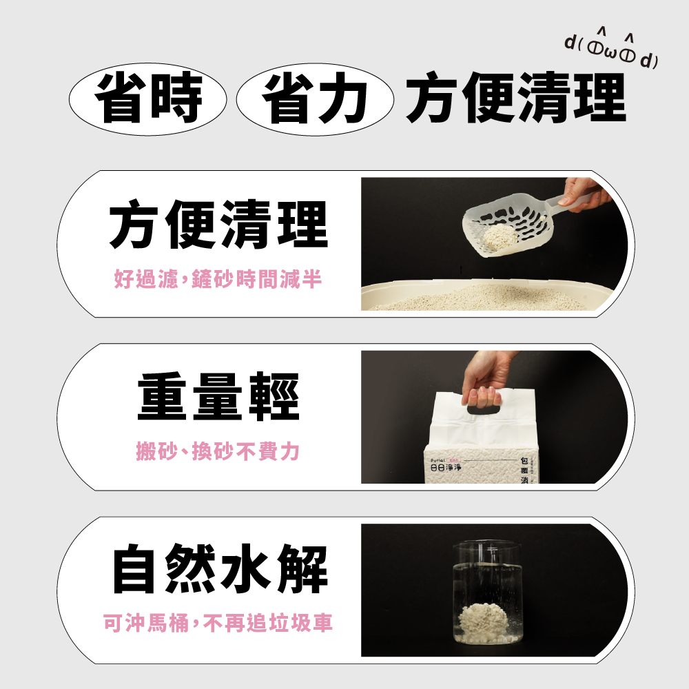 成分:豌豆纖維、玉米澱粉、瓜爾豆膠、生態除臭抑菌物質