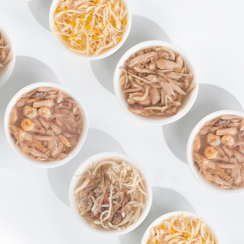 餵食建議:體重3kg以下每日1~2罐;體重3kg以上每日2~3罐。本產品僅可作為零食或搭配全營養主食給予