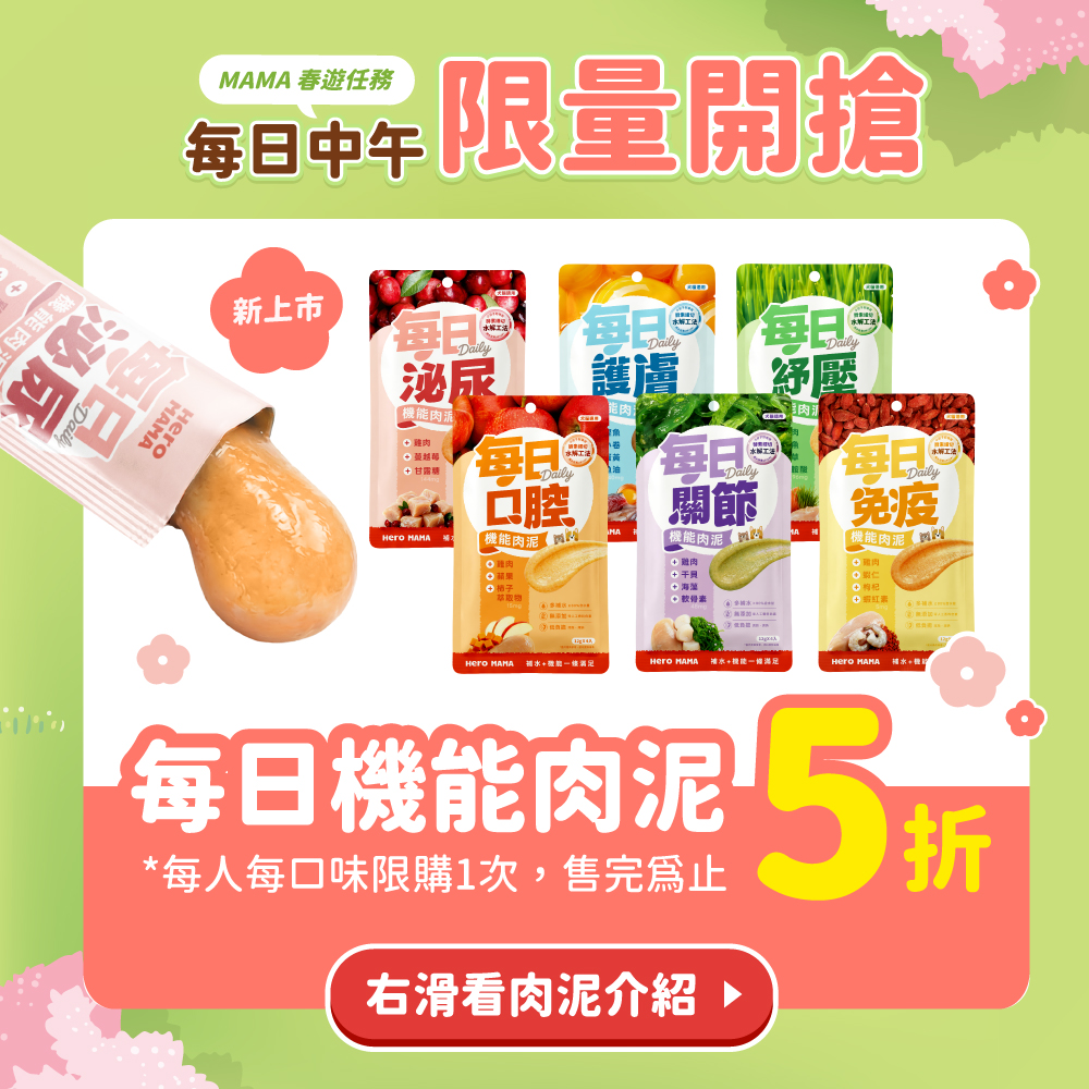 每日肉泥屬於機能零食,較難吃到每日建議保健食品用量,因此建議搭配相關機能保健品一起使用,效果會更好喔!本產品仍屬零食無法取代醫療行為,如有需要請諮詢獸醫協助。