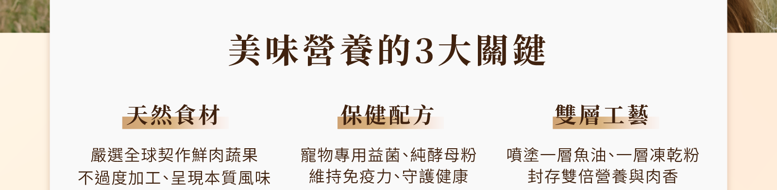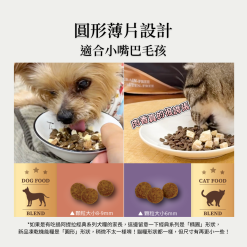 許多家長選擇凍乾拼糧,是想讓毛孩吃更多「原肉」營養,但市售拼糧有些凍乾是一半肉一半蛋、蔬果,甚至營養標示把飼料與凍乾混算一起,讓蛋白質比例更漂亮;而低成本混裝,還會造成凍乾長時間吸附飼料味道的困擾,因此有些家長會自行添購凍乾,親手「重拼」給毛孩。
