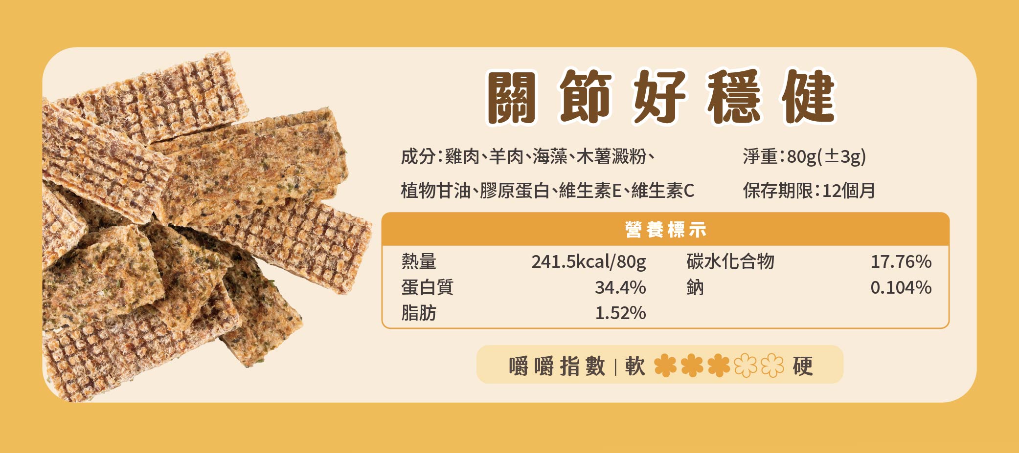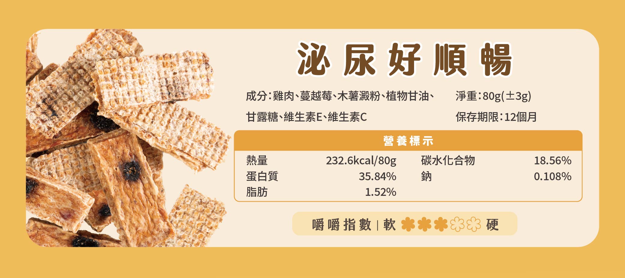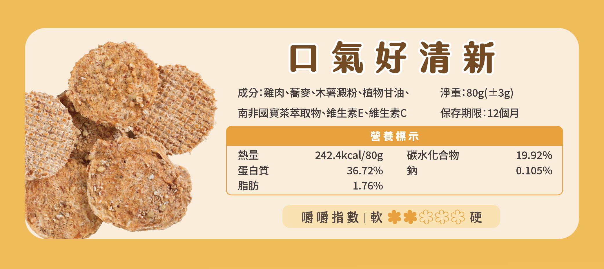 - 本產品為零食,建議每日餵食量不超過主食熱量的10%