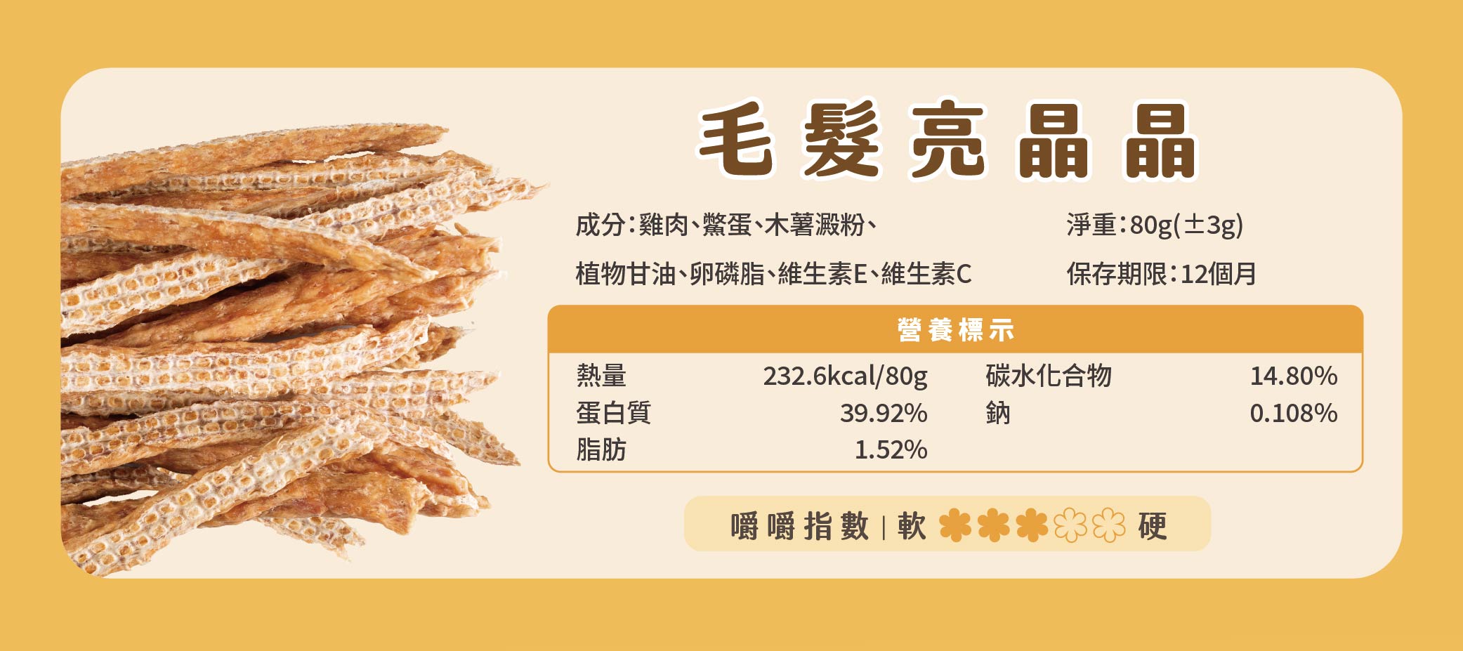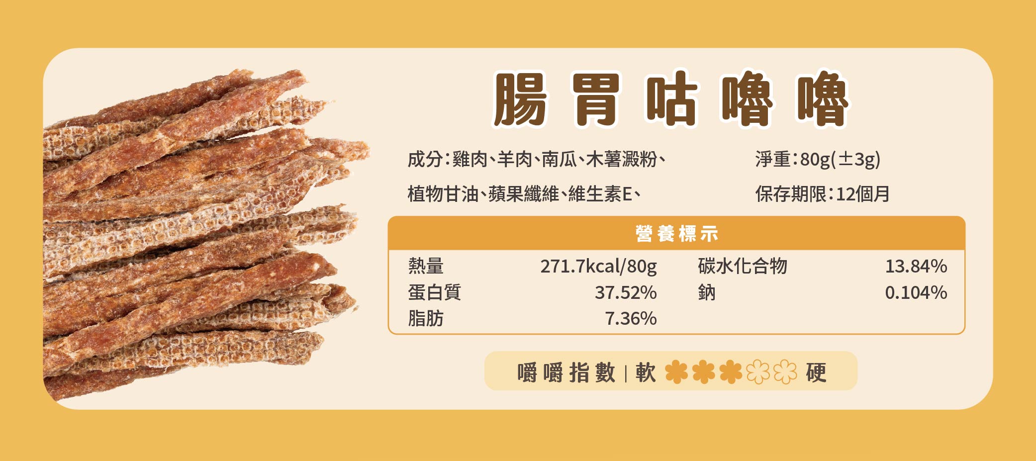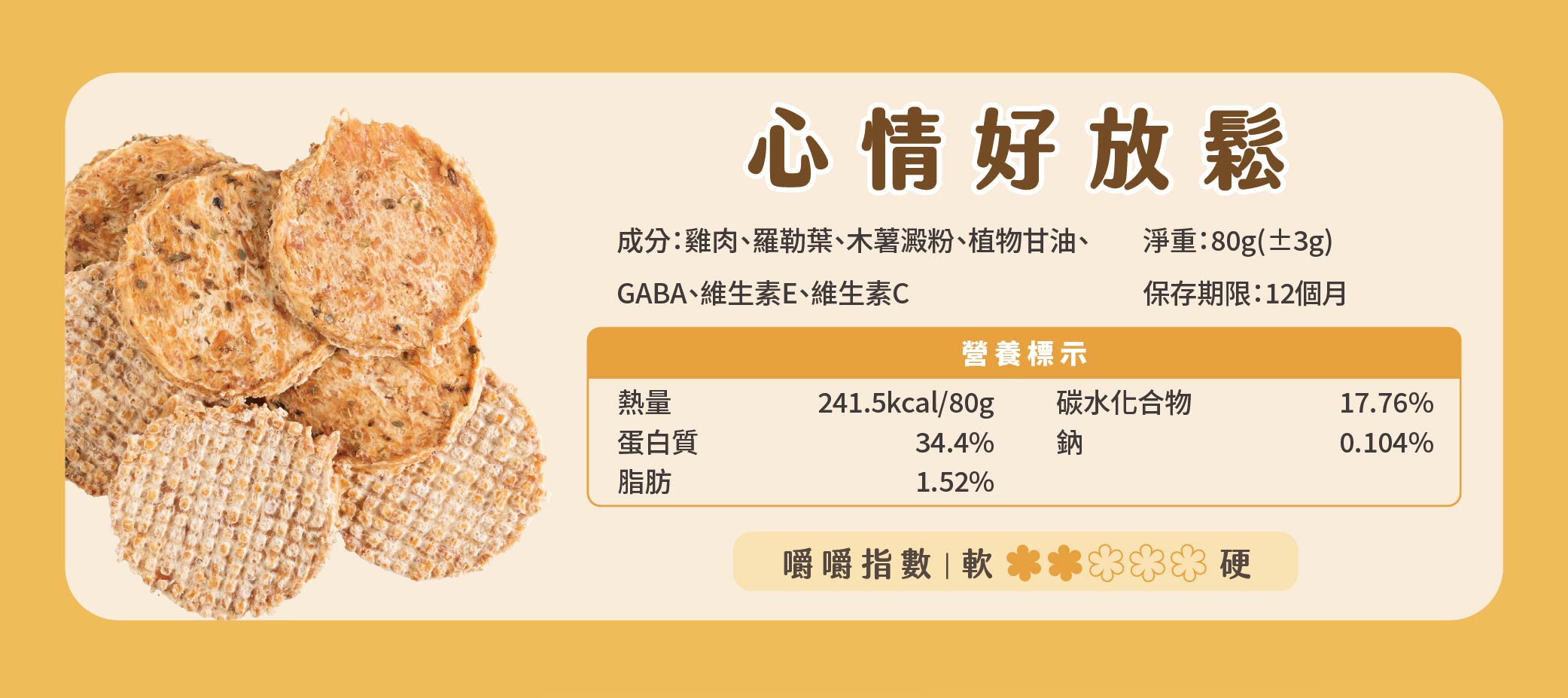 - 本產品為零食,建議每日餵食量不超過主食熱量的10%