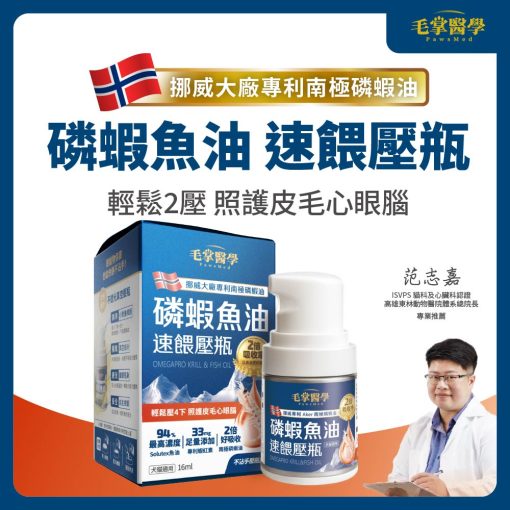 「磷蝦魚油」含磷脂型Omega-3以及天然磷脂,吸收效果比「魚油」更好(約2倍),適合腸胃敏感、老年、幼年犬貓。另外,磷蝦油也含有蝦紅素及膽鹼,對免疫、毛髮、關節等其他部位也有保健功能。
