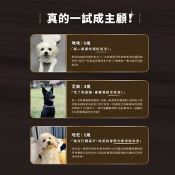 | 雞魚拌肉鬆餐 | 乾燥雞肉,乾燥魚肉,雞脂肪,豌豆,無調味豬肉鬆,蘋果,覆盆莓,樹薯澱粉,紅藜麥,小肽蛋白,水解酵母,乳酪粉,脫水雞肝,鮭魚油,蔓越莓、綠花椰菜、膳食纖維,甘露寡糖,牛磺酸,離胺酸,蛋胺酸,氯化鉀,氯化鈉,礦物質(鐵、鋅、銅、錳),卵磷脂,葡萄糖胺,軟骨素,鱉蛋粉,蝦紅素,綜合維生素(維生素 A、維生素 D3 、維生素 C、維生素 E、維生素 K3 、維生素 B1 、維生素 B2 、維生素 B6 、維生素 B12 、菸鹼酸、泛酸鈣、葉酸、生物素),絲蘭,酵母硒,益生菌,天然抗氧化劑 | 代謝能360.8kcal/100g、蛋白質≥30.0%、脂肪≥15.8%、碳水化合物≥34.9%、灰分≤7.8%、粗纖維≤3.8%、水分≤7.7%、鈉≥0.3%、磷≥1.0%、鈣≥1.3%、鎂≥0.1% |